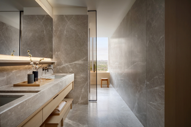 Die Innenräume, gestaltet von Studio Munge, verkörpern eine raffinierte Eleganz und eine kohärente Erzählung, in der moderner Luxus auf japanische Harmonie trifft. Jedes Detail ist sorgfältig durchdacht – die Räume wirken sinnlich, reduziert und zugleich warm und einladend.
